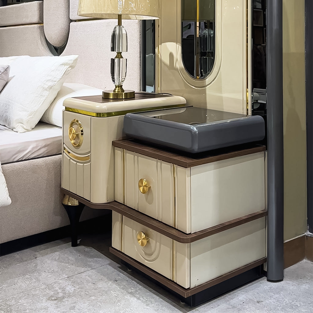 ✅ Luxury Finish: Glossy PU finish with gold details for a modern, elegant look.