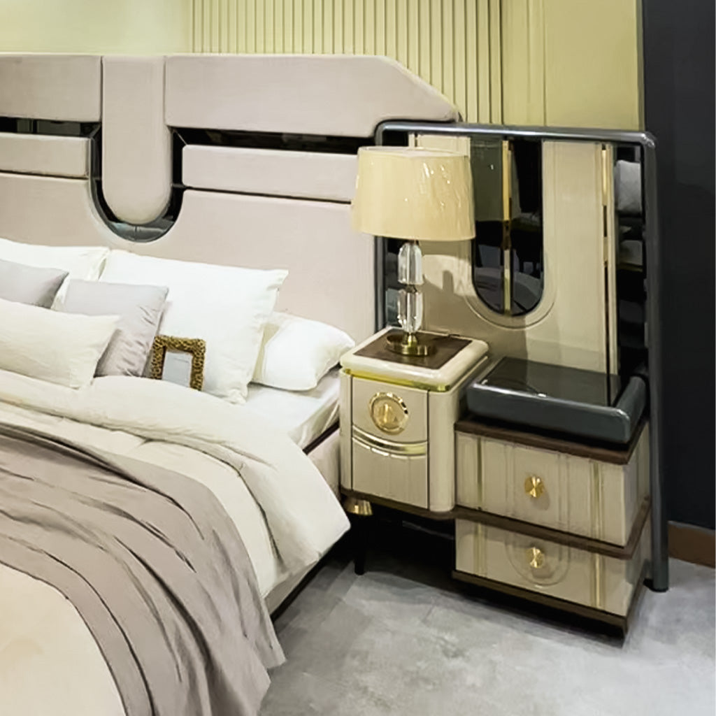 ✅ Complete Set: Includes bed, side tables, dresser with mirror, and vanity stool.