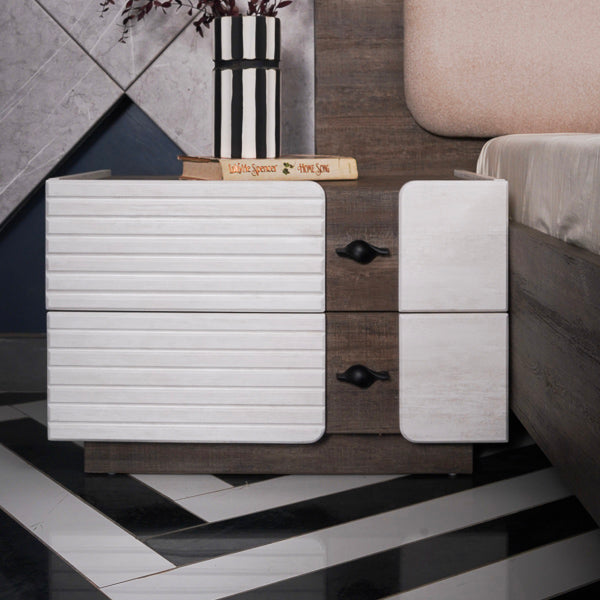 ✅ Ample Storage: textured bedside tables and dresser drawers for organization.