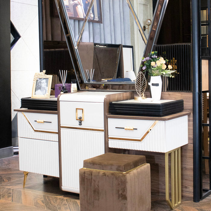 ✅ Complete Set: Includes bed, side tables, dresser with mirror, and vanity stool.