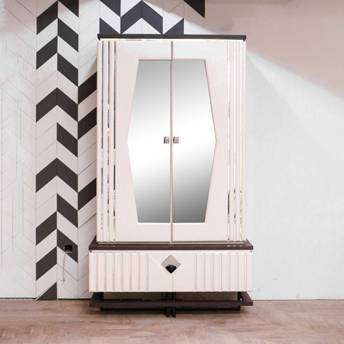 Glass: Dark gray glass on front panels, Belgium mirrors on dresser